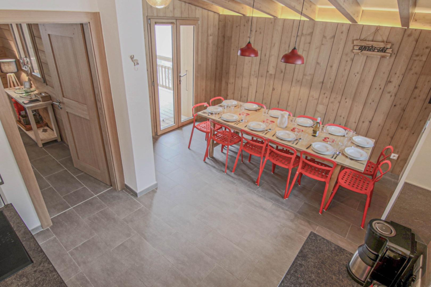 Le Chalet est un chalet récemment rénové avec 4 chambres et un magnifique plan ouvert salon avec cheminée et accès à 2 terrasses. Il y a un appartement 1 chambre à coucher en bas qui peut accueillir jusqu'à 6 et peut être intégré dans le chalet ou utilisé séparément. Dans l'appartement il y a une kitchenette, salon / salle à manger avec canapé-lit double, salle de bains familiale et chambre à coucher. Il y a un accès direct à l'extérieur du salon. Il y a une sauna pour 6 personnes, un Jacuzzi et un salle de ski dédié avec des chauffe chaussures avec un accès direct dehors afin que vous pouvez skier depuis le chalet. La cuisine est entièrement équipée et il y a une table à manger extensible pour accueillir jusqu'à 12 personnes. Il y a un parking privé pour 3 voitures à l'extérieur du chalet et vous êtes à seulement 2 minutes à pied de la centre du village.