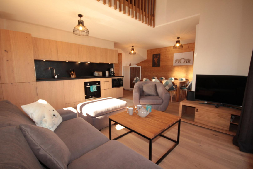 83m² de plaisir pour ce superbe 4 pièces + mezzanine 2 sdb neuf grand confort. Location de draps, lits faits à l'arrivée et ménage de fin de séjour compris.
