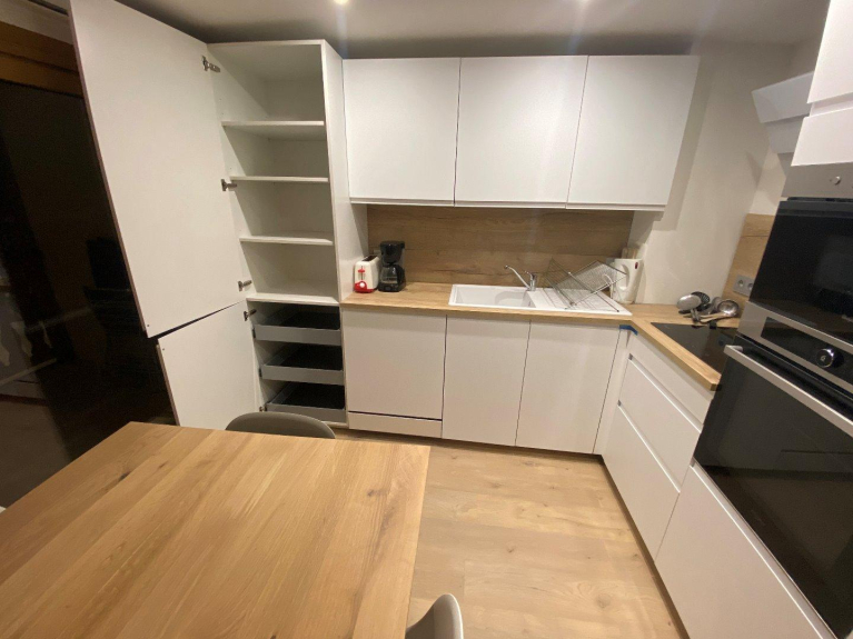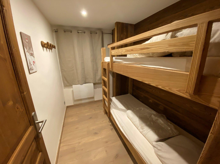Appartement de 41m² avec deux chambres (1 chambre avec un lit double en 140 et une chambre avec 2 lits superposés) entièrement refait à neuf dans une ambiance chalet. Tout est neuf y compris canapé, literie et meubles.