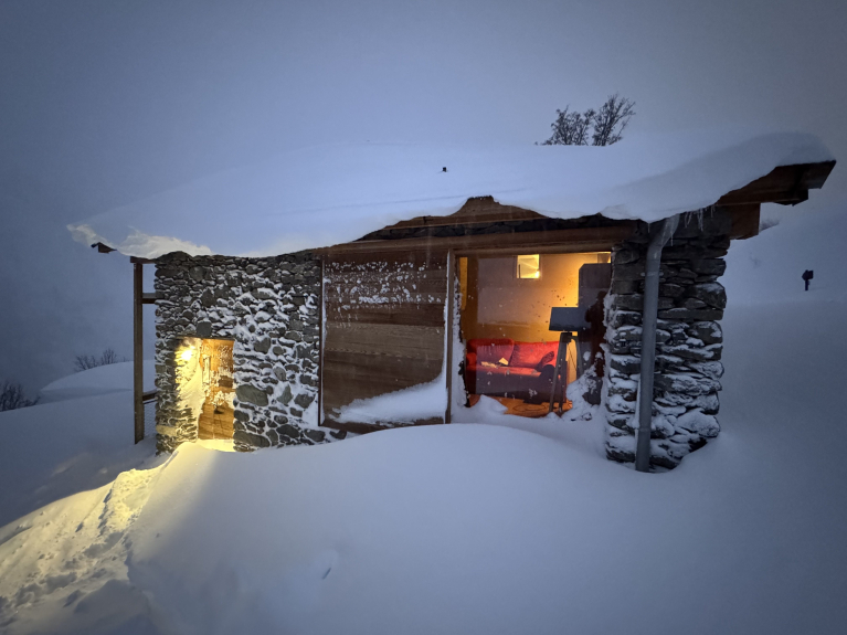 En hiver, le chalet est un paradis pour les skieurs : situé à 15 mètres des pistes du grand domaine de 160 km, il offre un accès direct jusqu’à 2750 mètres d’altitude. À 400 mètres de la station, on y accède à ski ou à pied par une piste damée et un chemin enneigée, pour une immersion totale dans un paysage préservé. L’absence d’accès en voiture en saison hivernale n’est pas une contrainte, mais une promesse de tranquillité et de dépaysement.