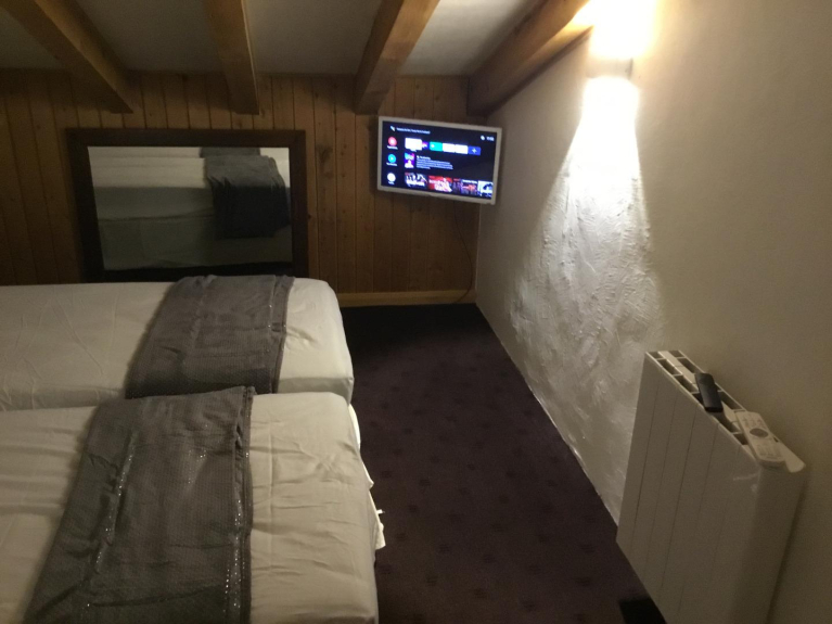 une quatrième chambre comprenant 2 lits en 90x 190 pouvant se réunir ou se séparer , l’intimité de la chambre se faisant par des rideaux occultants , TV dans cette chambre .