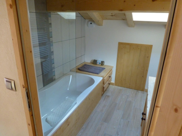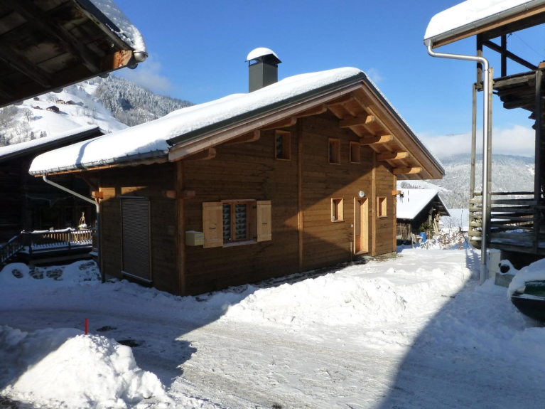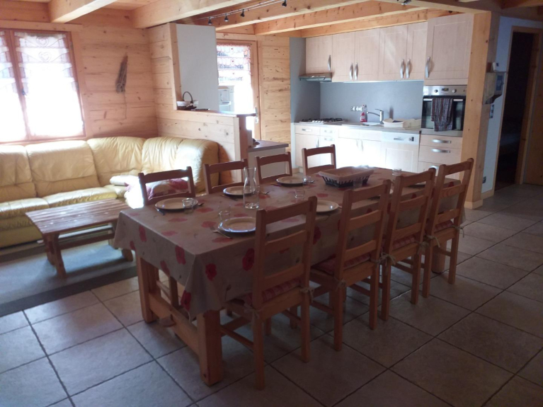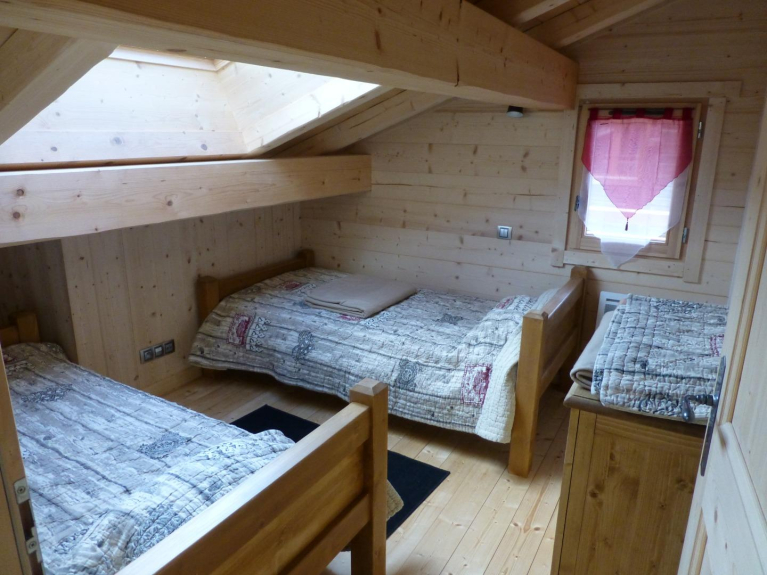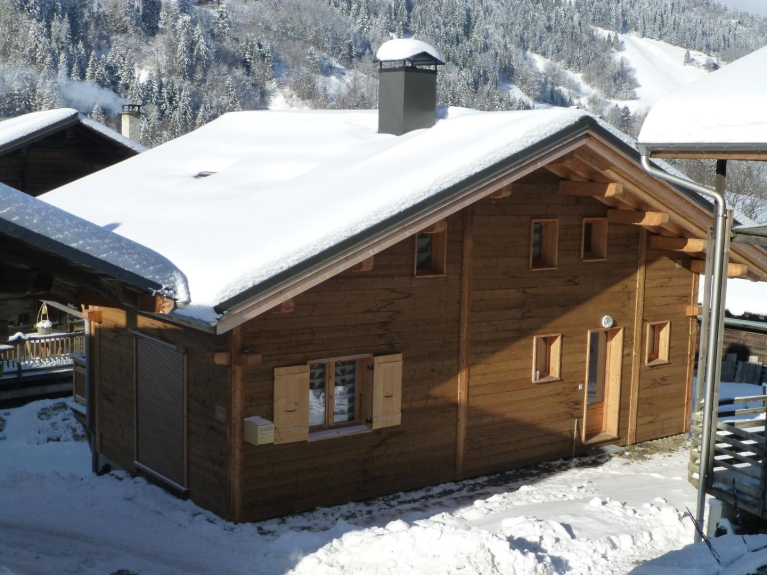 Chalet individuel bois de construction récente (2014) situé au hameau du Praz au calme à 1km du centre de la station d'Arêches. Le chalet de 60m2 au sol est prévu idéalement pour 2 couples et 4 enfants le tout sur 2 étages habitables et le sous sol: ils se composent de 4 chambres avec 2 lits de 140x190 et 4 de 90x190, d'un grand séjour-coin cuisine intégrée et passe plat, 2 wc, 2 salle d'eaux dont une avec baignoire. Carrelage au sol pour le rez de jardin et parquet bois à l'étage. Le sous sol est quand à lui réservé pour une grande partie au garage fermé mais aussi pour le stockage des skis en hiver et des vélos en été, ainsi qu'une cave et une lingerie. 3 places de parking sont disponibles autour du chalet, mais équipements automobiles hivernaux fortement conseillés. Chalet avec WIFI