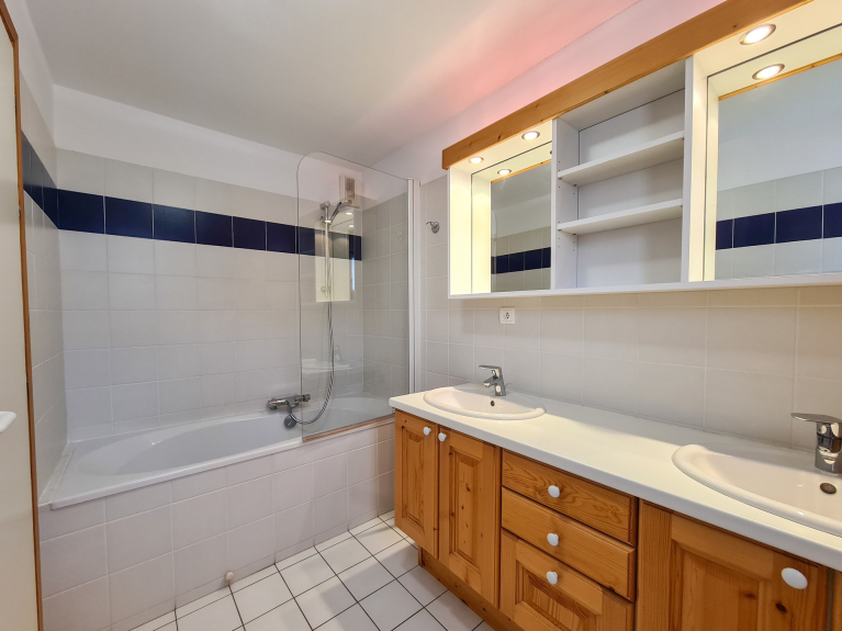 - Salle de bain avec baignoire et douche (2 lavabos)