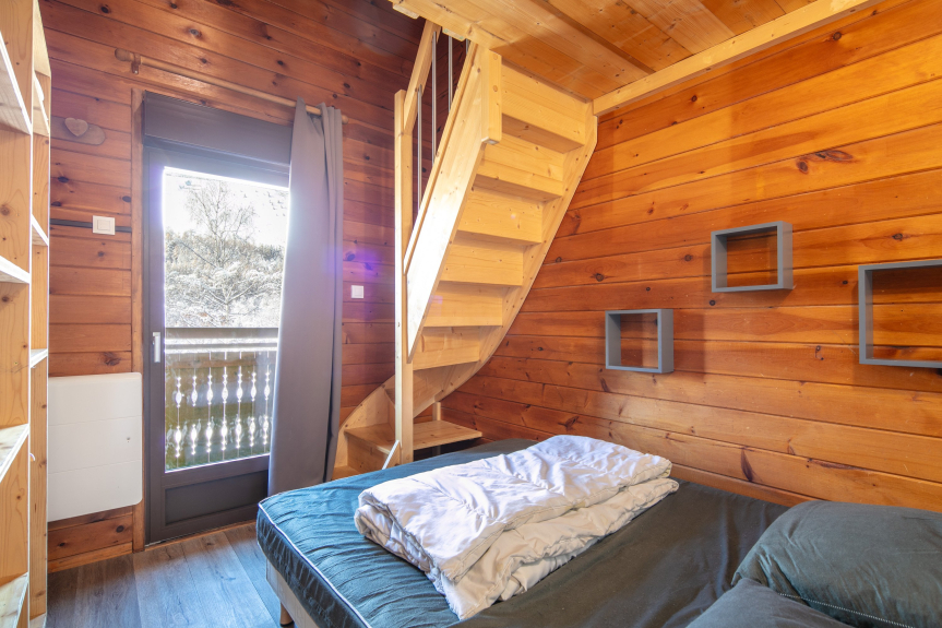 Une suite familiale avec 1 lit double et 2 lits simples en mezzanine (Piste Verte).