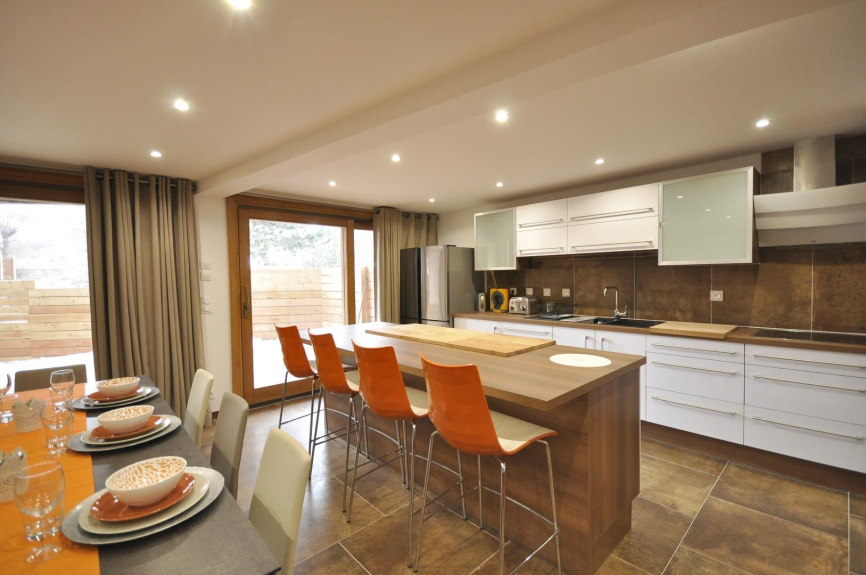 Situé en rez-de-jardin des chalets d’Hinouka, très spacieux avec ses 100 m², éclairé par d’immenses baies vitrées côté Sud, le Kilimandjaro vous séduira avec son immense cuisine hyper-équipée ouverte sur le salon, ses 4 chambres… Intérieur ultra-moderne avec certains murs en vieux mélèze de pays, verrières intérieures, murs de peaux, mobilier cossu : canapé en cuir Fama, Ecran-plat géant 163 cms, Connexion WI-FI…