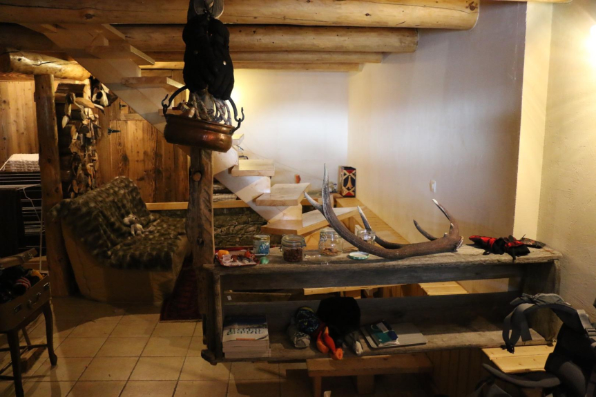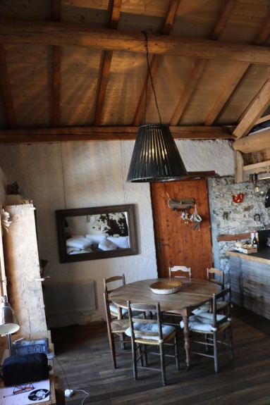 Laurence est savoyarde de la vallée, Luc est des Flandres, elle travaille dans la culture et lui est artiste plasticien. Avec les enfants on adore se retrouver dans notre chalet familial chaque fois qu'il nous est possible. Imaginez, le chalet est dans notre famille depuis sa construction en 1820 ! C'est le contact avec la nature qui est extraordinaire, à 15 minutes à pied de la station des Arcs 1800, c'est suffisamment loin sans être totalement isolé. A l'origine nous ne venions au chalet qu'en été, de par mon métier j'ai pris un grand plaisir à imaginer un chalet chaleureux et très personnel où il est très agréable de se retrouver été comme hiver . Pour nous le must c'est d'y venir ski aux pieds avec les sacs à dos, c'est un sentiment de liberté extraordinaire. Bien sur il faut être sportif, aimer la montagne, les grand espaces et chercher autre chose, quelque chose d'unique. C'est aussi sans vous dire la vue incroyable que nous avons sur toute la chaîne du Mont Blanc, vue dont on ne se lasse jamais été comme hiver où les coucher de soleil un verre à la main sur la terrasse sont .... du bonheur parfait. En été nous passons de merveilleux moment entre les grandes randonnées en Vanoise, le parc national est à 1 bonne heure de marche, les courses de haute montagne vers le Mont Blanc italien ou autour du Mt Pourri, nous ne pratiquons pas le VTT, mais pour ceux qui aiment le chalet est sur les pistes des meilleurs spots de la Tarentaise. Quand arrive la mi aout, c'est le temps des cueillettes myrtilles, cèpes, chanterelles.... L'hiver un de nos grand plaisir c'est d'être les premiers sur les pistes avant même que la station n'ouvre et de rentrer le soir quand tout est vide de skieurs ! Les soirée autour du poêle finlandais, un bon verre de blanc de savoie à la main, de belles histoires de montagne, ou de grandes discussions sur l'art nous mènent tard dans le silence de la montagne.