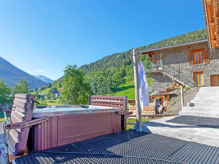 Superbe chalet de luxe au pied des pistes avec sauna, jacuzzi extérieur, cheminée (pellets) et wifi gratuit. Bénéficiez de l’emplacement idéal juste en face de du télésiège « Replat », qui donne accès à l'ensemble du domaine skiable des Arcs - Paradiski. Récemment entièrement rénové et aménagé avec du goût, ce chalet unique combine le style traditionnel montagnard en bois et pierres naturelles avec un intérieur moderne haut de gamme. Profitez pleinement de ce logement spacieux avec beaucoup de charme et de confort. Chaque chambre dispose d’une propre la salle de bain en suite ainsi qu’une télé.