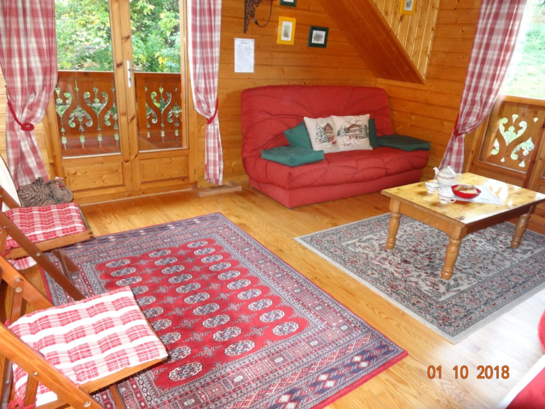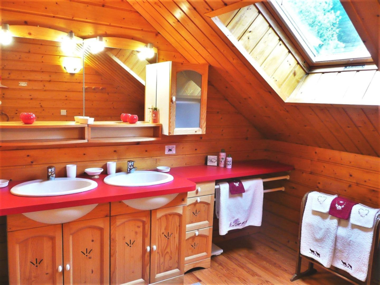 Juste à la sortie du village, le chalet est central pour le ski de descente, le ski nordique, les randonnées, les commerces et les activités ludiques ou sportives. Au calme, il surplombe le village avec superbe vue panoramique sur les montagnes et forêts. Avec 200 m2 de surface d'habitation (181 m2 sup à H=1,8 m) il est soigneusement aménagé et décoré. Il accueille aisément 12 personnes + 2 lits BB + 2 convertibles salons en dépannage (Maxi 15 personnes). 6 chambres dont l'une constituée par la mezzanine qui s'isole avec des tentures, 4 WC et 3 Salles de bain /d'eau-douche, 2 salons séjour et 2 cuisines américaines.