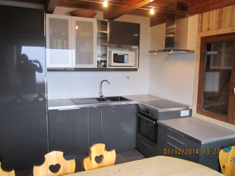 1 séjour cuisine avec lave vaisselle (grande baie vitrée plein sud). Elle est équipée pour 12 personnes.
