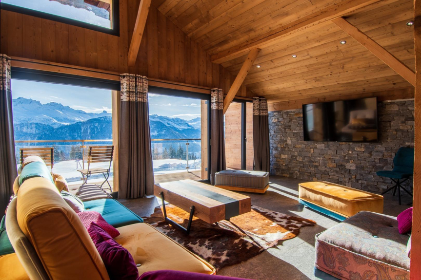 Une vue magnifique, totalement dégagée, face aux Mont Blanc et la chaîne du Beaufortain.