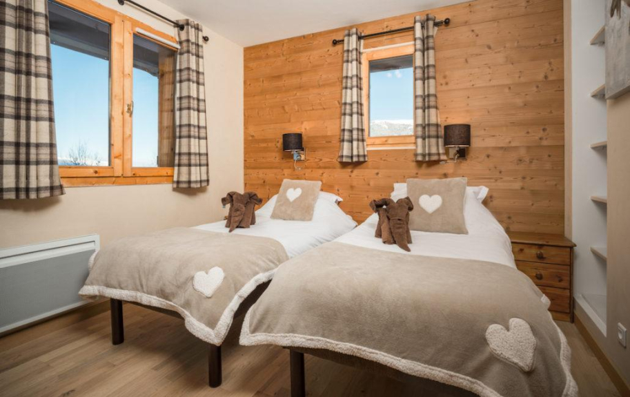 Le chalet se divise en chambre de 2 personnes, toutes en-suite. Les salles de bains sont équipées de tout le confort nécessaire, dont notamment une gamme de produits issue de la collection « l’Occitane ».