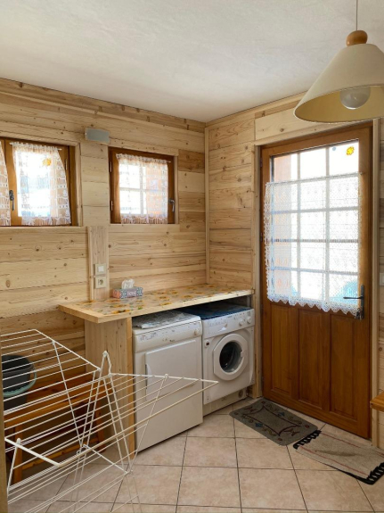 COIN MONTAGNE : Banquette gigogne (2 couchages) et coin buanderie (lave-linge et sèche-linge)