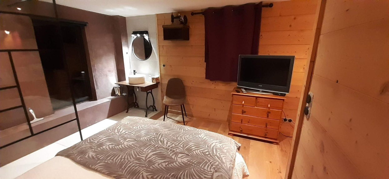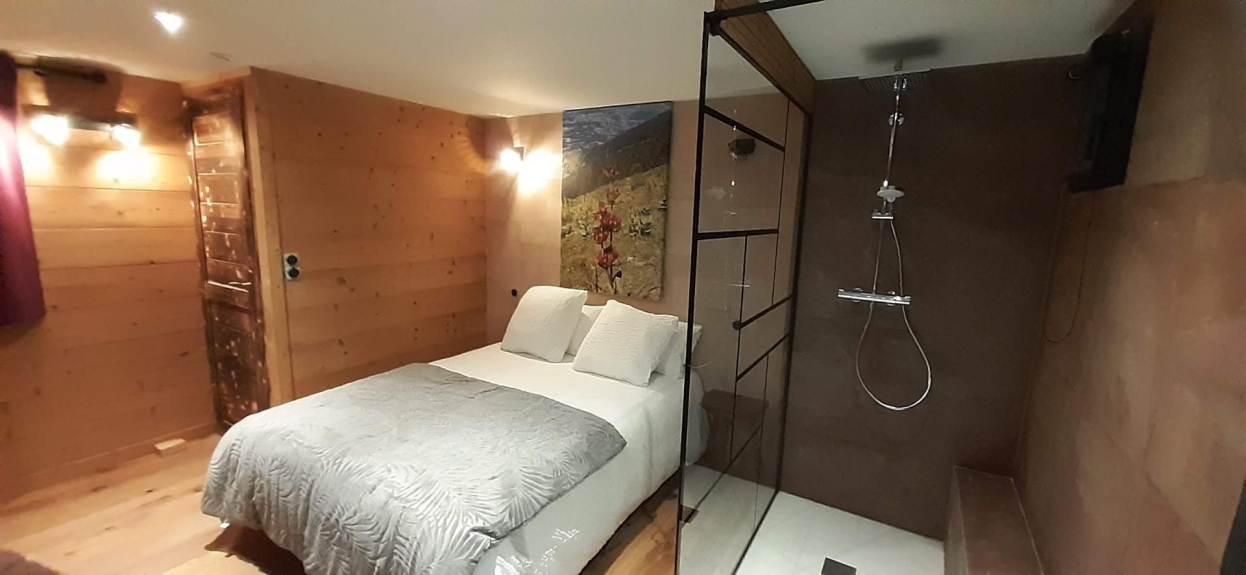 Les 2 chambres, l’une pour 2 personnes au rez-de-jardin, et la seconde à l’étage plus spacieuse pouvant recevoir un lit d’appoint si nécessaire, sont aménagées avec des salles de bains ouvertes sur la chambre et des WC indépendants, ainsi que de télévisions. Celle de l’étage vous ouvrira aussi son balcon, orienté vers le Chalet de Jo, de même que le balcon d’entrée du rez-de-chaussée.
