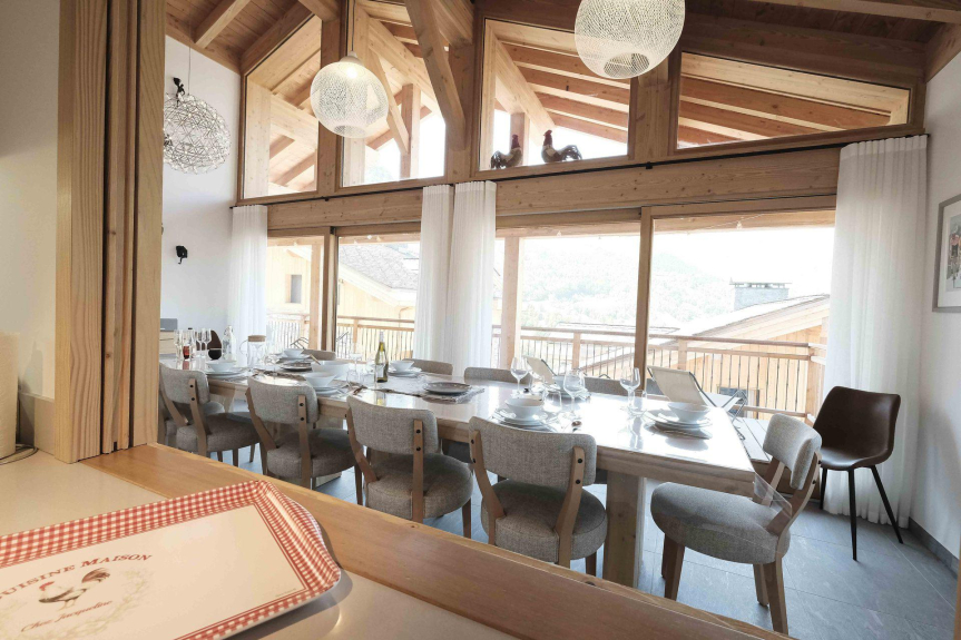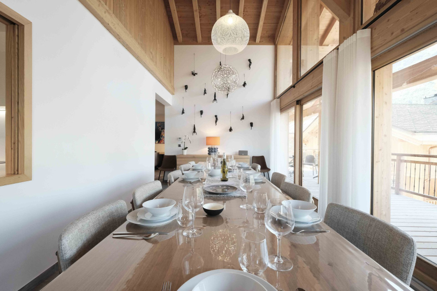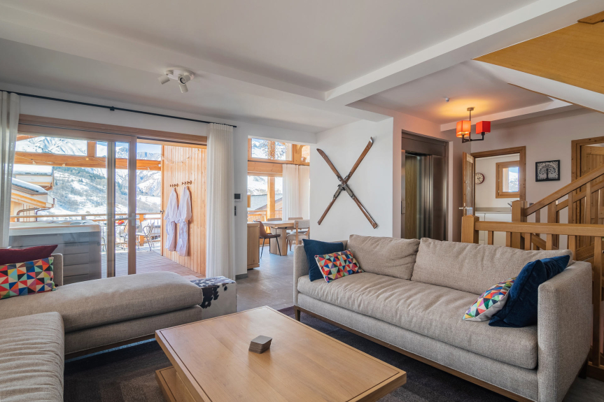 Chalet Allium a été conçu pour vous offrir un lieu de retrouvailles à la montagne, en toute simplicité, mais avec un grand standing moderne : 210 m² sur 4 niveaux (avec ascenseur), 6 chambres en suite. Pour les sportifs, les pistes partent à 10m du chalet, pour les contemplatifs, sa terrasse de 40m² avec jacuzzi, son sauna ou son salon télé vous permettront un vrai moment de détente. Les arrivées se font le dimanche.