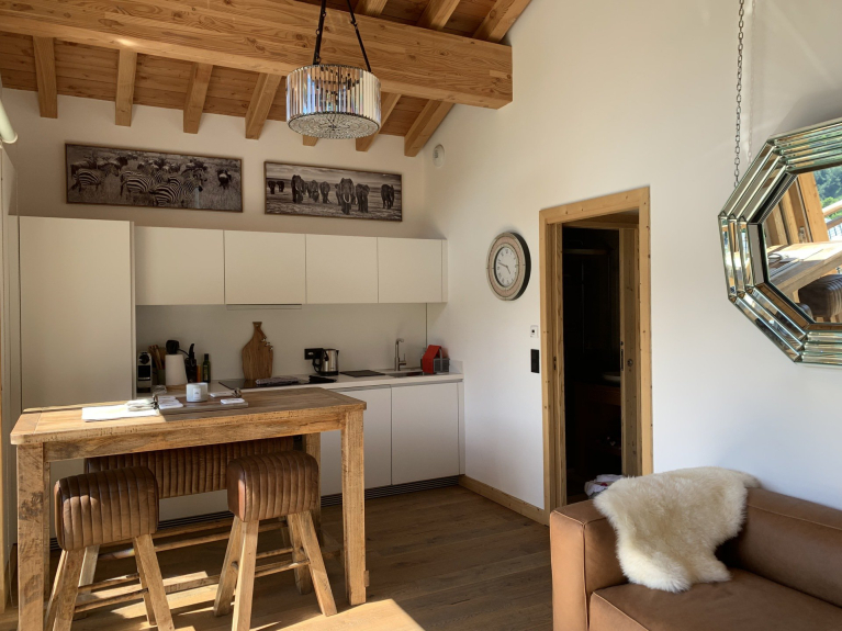 LE NID est... un vrai nid de charme pour 2 à deux pas de la piste de Saint Martin, et avec une vue panoramique imprenable depuis son balcon. Cet appartement de 30 m² (1 chambre) permet de combiner loisirs sportifs (le skiroom, avec chauffe chaussures ouvre directement sur la piste) et repos bien mérité, en après-ski sur le beau balcon Ouest ou le soir autour du poêle à bois.