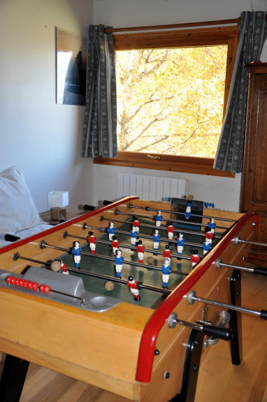 Babyfoot professionnel Bonzini, vidéoprojecteur et vidéothèque pour visionner des films en 4m*3m, bibliothèque, internet wifi dans tout le chalet. Vous ne vous ennuierez pas même par mauvais temps !