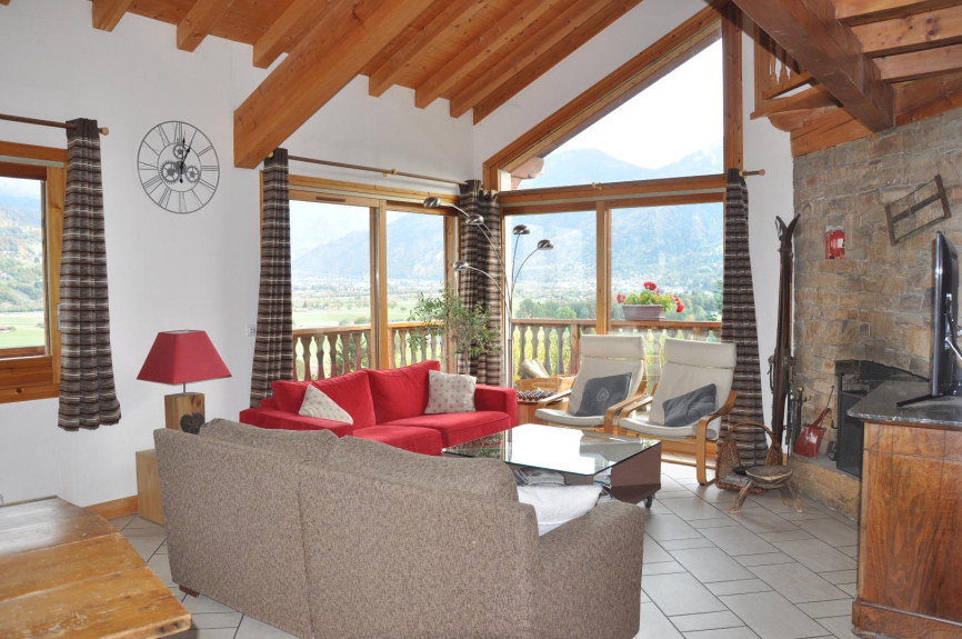 Ce vaste chalet aux grands volumes vous offrira beaucoup de confort et un panorama exceptionnel sur le Mont-Blanc, les Dômes de Miage, les Aravis et les Aiguilles de Varens.