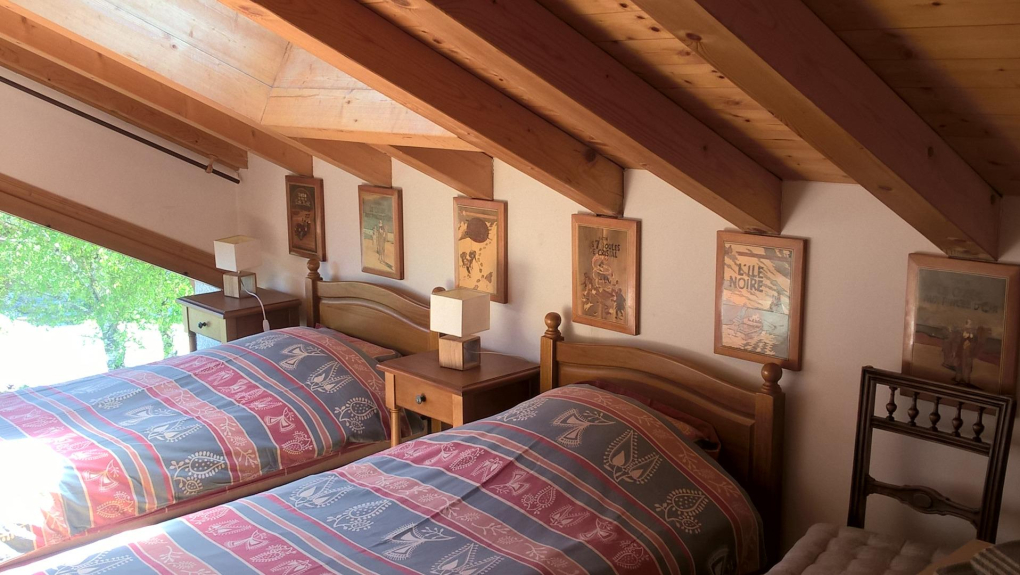 Chalet de 180m2, très bien équipé, alliant bois et pierres sèches, grand salon avec cheminée, grande salle à manger/cuisine pour 10 personnes, quatre chambres (3 doubles et une familiale pour 4 personnes), 3 salles de bain (2 avec douches italiennes et une avec baignoire), 3WC.