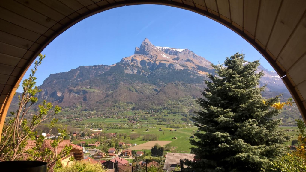 Grande terrasse bois (30m2) face au Mont Blanc.