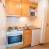 Coin cuisine : plaques électriques, four, four micro-ondes, réfrigérateur et tout le nécessaire de vaisselle