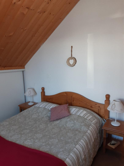 Etage : salle d'eau avec WC, 2 chambres (1 chambre avec un lit double et 1 chambre avec deux lits simples), balcon.