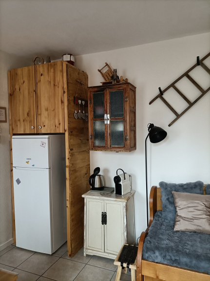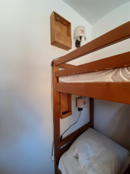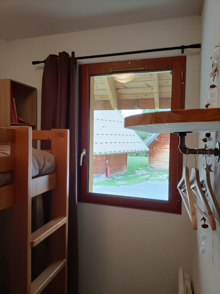 Le chalet se compose d'une entrée, Chambre (lits superposés), salle de bain, WC, pièce de vie cuisine (17m2) avec canapé convertible en RDC.
