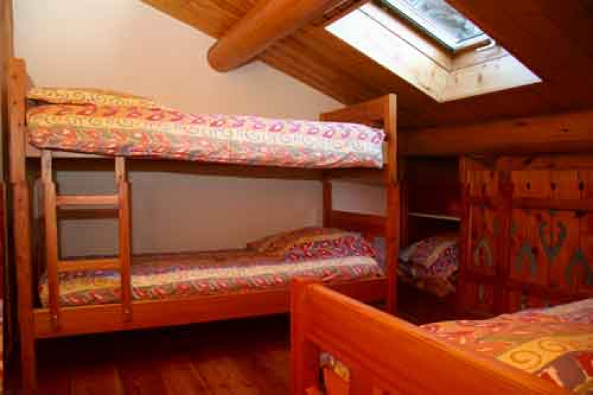 - Chambre n°2 sur mezzanine équipée d'un lit superposés pour 2 personnes et d'un lit tiroir pour 2 personnes.