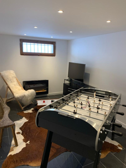 Un garage, un ski-room et une salle de jeux.
