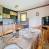 Cuisine incorporée 4 plaques, réfrigérateur, hotte, four et lave-vaisselle, grille-pain, bouilloire et cafetière.