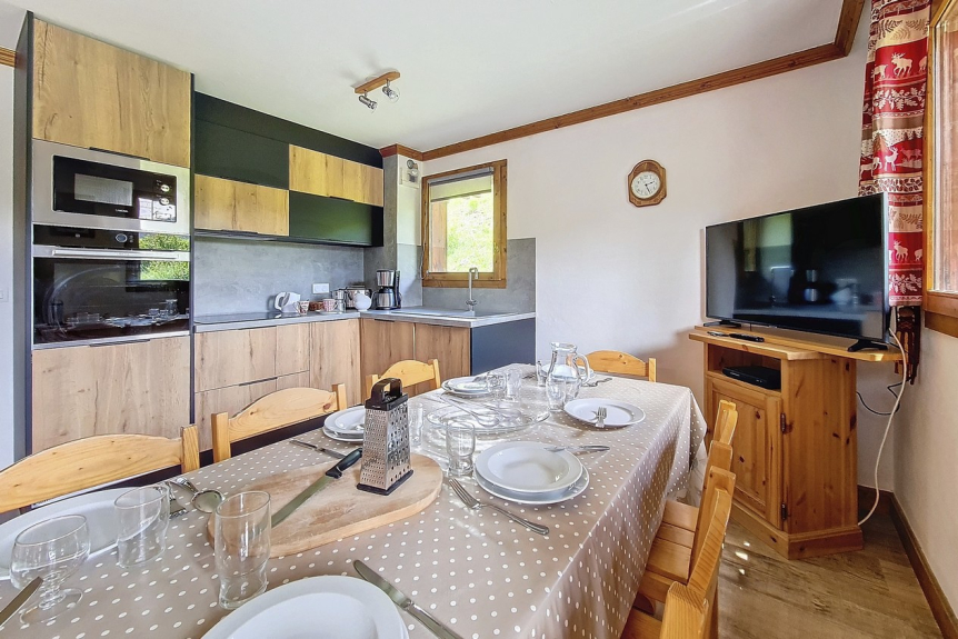 Appartement 4 pièces de 60m² situé au 1er étage sans ascenseur pour 8 personnes. Il possède un balcon orienté Sud. CHALET EPICEA