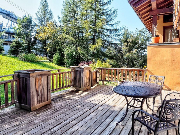 personnes est réparti sur 2 étages. Le chalet est situé en retrait de la route, dans un endroit isolé avec une belle terrasse ensoleillée orientée au sud, mais il n'est qu'à 20 m des pistes, du téléphérique Vanoise Express et du télésiège de Peisey. Cette situation privilégiée, permet d'accéder facilement les pistes des Arcs ou de monter dans le Vanoise Express pour skier sur le domaine skiable de La Plagne. Les magasins et les restaurants sont facilement accessibles à pied et vous êtes juste au-dessus de la route du télésiège de Lozangne qui vous emmène au village traditionnel de montagne de Peisey.