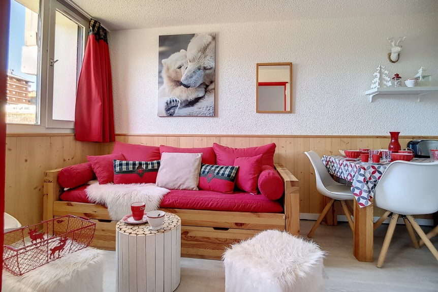 Parking gratuit au pied de l'immeuble. Commerces et école de ski à proximité. Les pistes sont à 250 mètres.