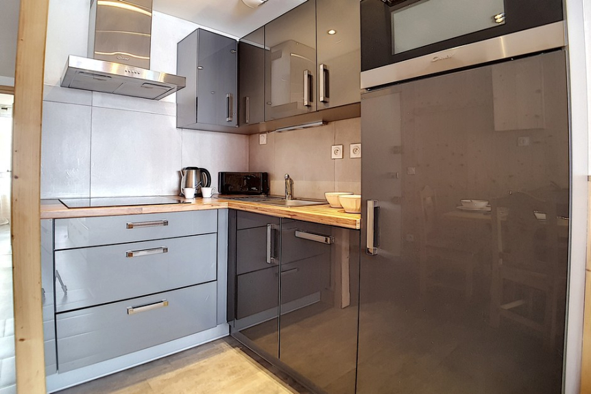 Très bel appartement entièrement rénové, orienté Sud-est, avec balcon. 38 m² pour 5 personnes. Il est situé au-dessus de la galerie commerciale, au 1er étage d'une résidence skis aux pieds.
