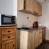 Cuisine équipée de 2 plaques inductions , réfrigérateur avec compartiment freezer, four multifonction, lave-vaisselle, cafetière et bouilloire.