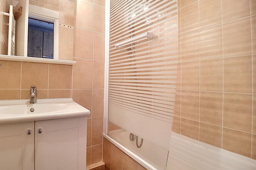 Grand coin montagne (avec fenêtre) séparé du séjour par un rideau : 1 canapé-lit 2 personnes en 120 cm.