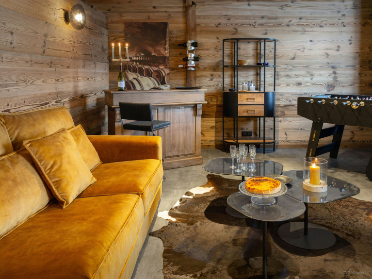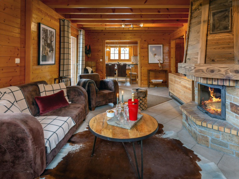La salle principale comporte une cuisine toute équipée adjacente à la salle à manger pour que la préparation des repas s’effectue en toute convivialité. Après le dîner, la famille prendra plaisir à se retrouver autour de la cheminée pour organiser les aventures du lendemain. En été la terrasse vous accueillera pour un délicieux barbecue, un apéritif au coucher du soleil, ou encore un petit digestif sous les étoiles.