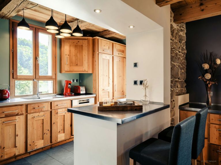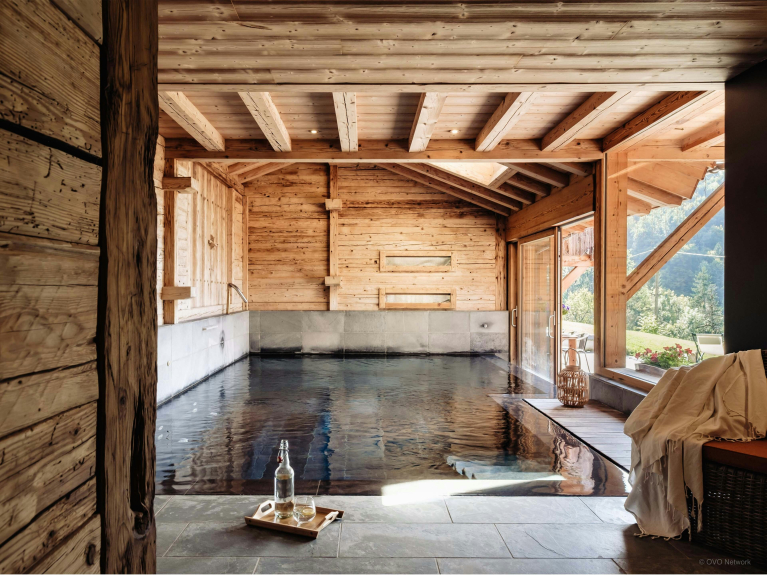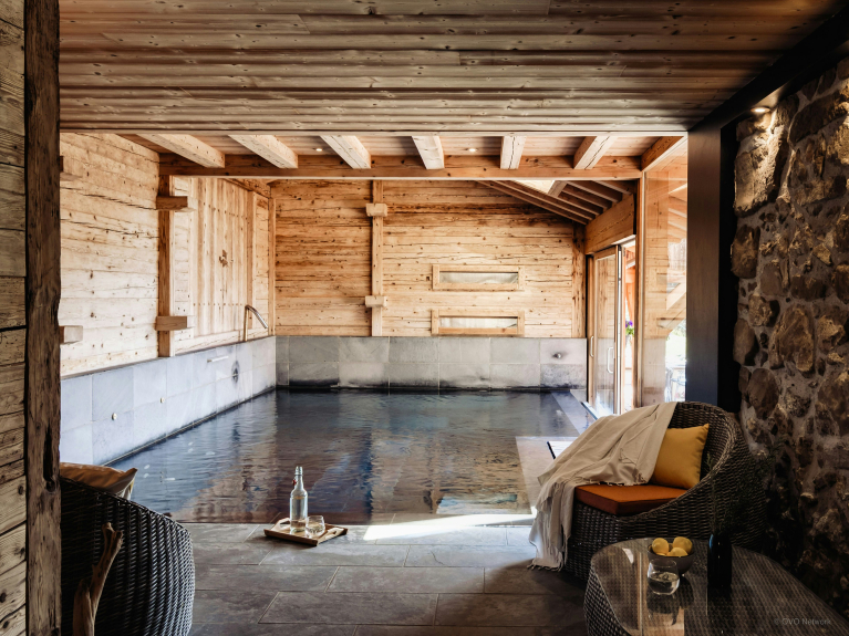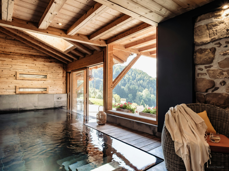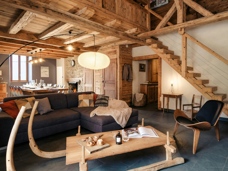 L’espace extérieur constitue l’un des points forts de la propriété, grâce à une grande terrasse ensoleillée parfaite pour se détendre, dont la partie couverte abrite un espace repas pour 12 personnes, utilisable toute l’année – l’endroit idéal pour profiter d’un dîner en terrasse tout en admirant le soleil se coucher derrière les montagnes. L'ancienne cave à fromage en-dessous du chalet, a été transformée en local à ski, où vous pourrez entreposer tout votre matériel.