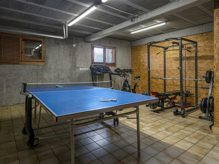 Cheminée, Home cinéma, Babyfoot, salle de gym,