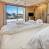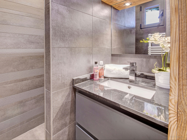 La vaste pièce à vivre est composée de deux salons, l’un aménagé près du poêle à bois, et l’autre permettant de contempler à l’envi les vues magnifiques à travers la baie vitrée. Vous pourrez aussi découvrir le panorama depuis le balcon exposé Sud, ou encore depuis le jardin aménagé à l’arrière du chalet. A cet étage se trouvent également la cuisine et l’espace repas.