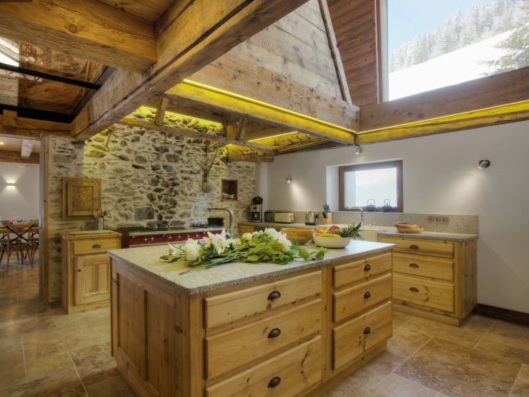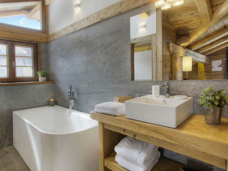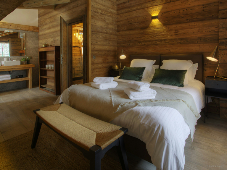 Que vous veniez avec vos amis ou votre famille, chacun trouvera sa place. Avec ses sept salles de bain, le chalet vous permettra de préserver votre intimité. Et lorsque vous aurez envie de vous rassembler, vous aurez le choix parmi les différents espaces à vivre en intérieur tout comme en extérieur. Que diriez-vous, par exemple, de regarder un film dans le salon douillet, de préparer ensemble un repas dans la très grande cuisine, d’apprécier la vue depuis la terrasse ou mieux encore, de vous détendre dans l’espace bien-être situé en rez-de-jardin. Vous pourrez buller dans le jacuzzi encastré tout en profitant de la vue sur la montagne, ou prendre soin de votre peau et vous délasser dans le sauna après une journée bien remplie.