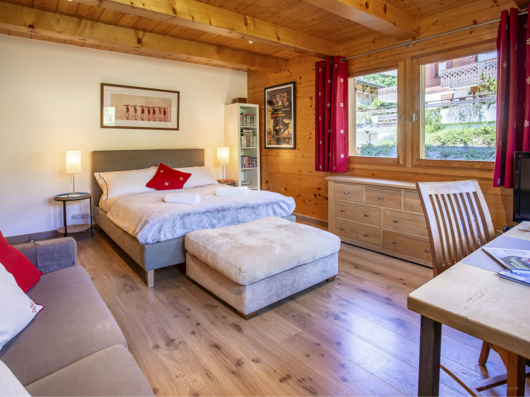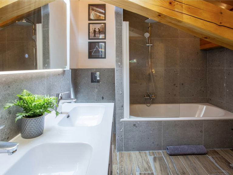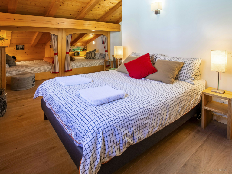 Nous aimons tout particulièrement les deux suites familiales aux lits supplémentaires que peuvent partager les familles de quatre personnes, un groupe d’amis ou des cousins. Trois des chambres ont une salle de bains attenante et les deux autres ont accès chacune à leur propre salle de bains sur le palier. Vous trouverez aussi un autres WC séparé. Une des chambres est équipée d’un canapé confortable, d’un téléviseur et d’une salle de jeux pour les enfants. Notez que le chalet Tolar bénéficie du label Cool for Kids.
