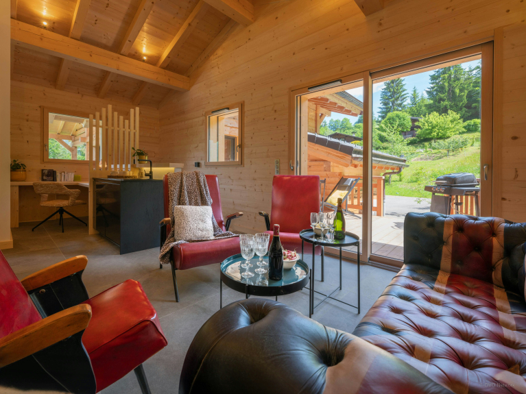 Le centre du village, où vous trouverez un large choix de commerces et de restaurants, est à seulement 700 m et vous y accéderez par la route principale, en provenance de La Clusaz, qui passe en contrebas de la propriété. Vous pourrez également rejoindre La Clusaz et Le Grand Bornand pour plus d’animations encore. La splendide cité médiévale d’Annecy se trouve à 25 km, pour une belle escapade à la journée et en toute saison.