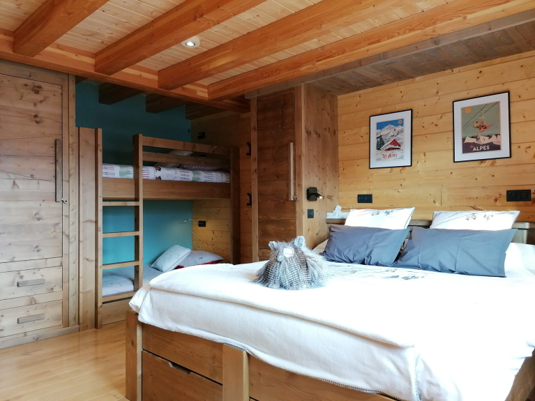 Le chalet "La Grotte de l'Ours" est un magnifique chalet Luxe Prestige, neuf (2020), conçu pour un maximum de 5 familles (20 couchages), d'environ 350m², sur 4 niveaux. Exposé Sud-Est avec terrasses et balcons. Classement meublé de tourisme 5*.