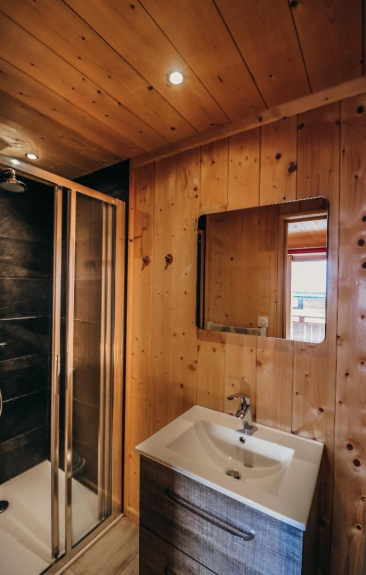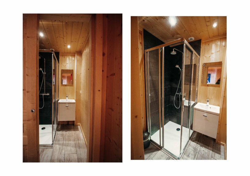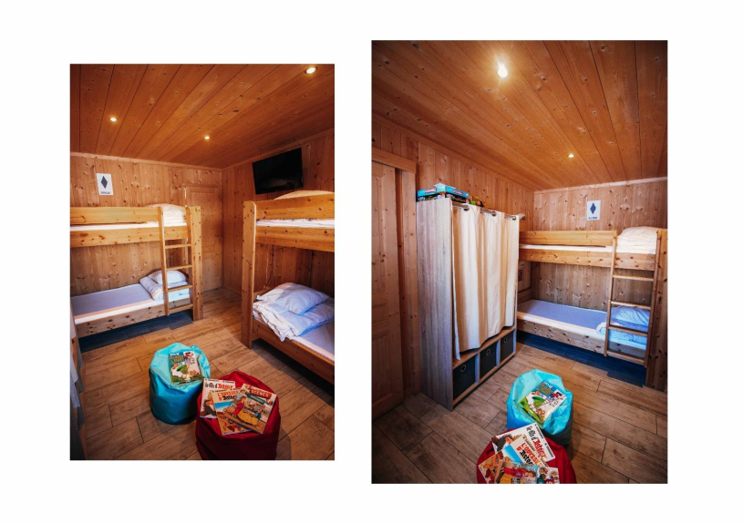 - CHAMBRE n° 4 = 2 x 2 lits superposés 90 x 200, avec salle d’eau douche à l’italienne, meuble vasque, sèche serviettes, TV et barre de son.