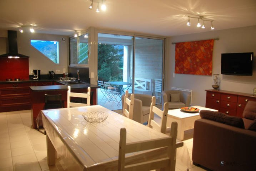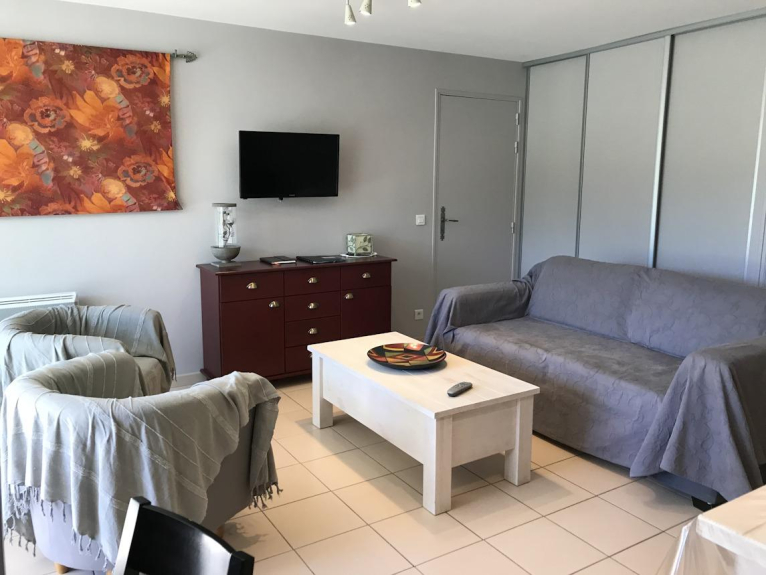 A la limite du Pays Basque et du Béarn, l'appartement se compose d'un séjour avec canapé et fauteuils, table basse, TV et lecteur DVD + cuisine américaine complètement équipée : four, micro-onde, lave-vaisselle, réfrigérateur-congélateur, plaques induction et gaz, cafetière, bouilloire, grille pain, robot électrique, lave-linge séchant.