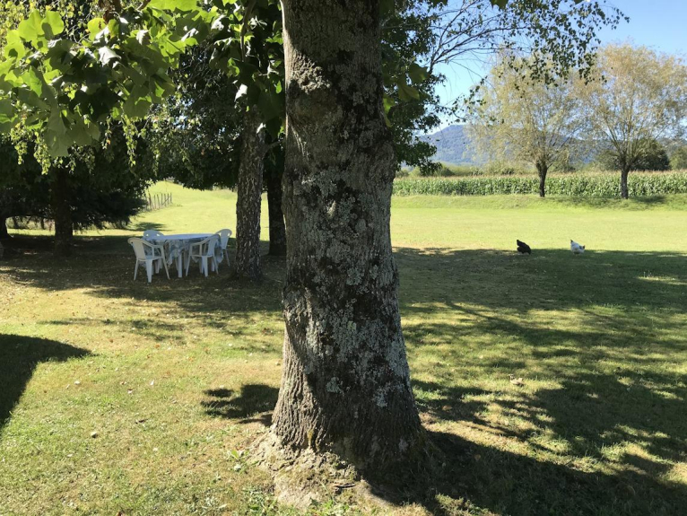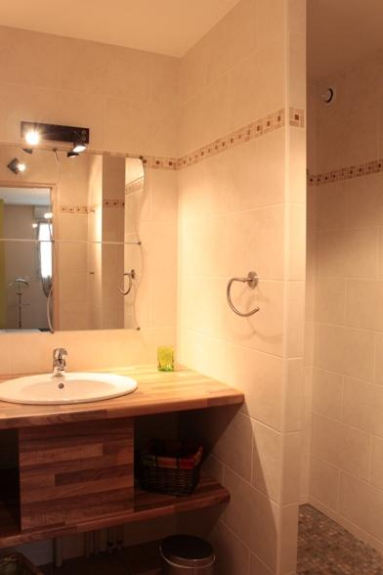 - 2 salles d'eau - douches italiennes. - WC indépendants avec lave mains. Pour prendre l'air : terrasse semi couverte et immense jardin de 5000 m² entretenu à disposition, ruisseau au fond du jardin. Salon de jardin, + 4 chaises longues, et store banne.