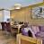La cuisine / salle à manger est équipée d'un grand four, d'une plaque de cuisson halogène à quatre brûleurs, d'un grand réfrigérateur avec petit tiroir de congélation, d'un grand lave-vaisselle, d'un micro-ondes, d'un plateau / bouilloire, d'une table à manger et de 6 chaises.