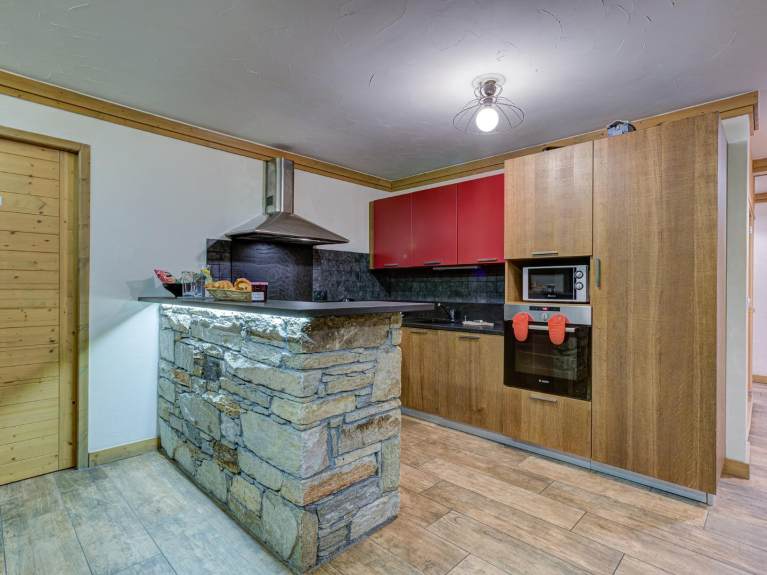 Idéalement situé dans le quartier Almes à Tignes Le Lac, cet appartement chalet de construction récente représente parfaitement le style savoyard traditionnel et moderne.
