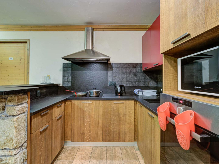 Le salon attrayant peut accueillir confortablement jusqu'à 6 personnes, Smart TV et accès à un balcon. La cuisine-salle à manger décloisonnée entièrement équipée dispose d'excellents appareils qui permettront de préparer de bons dîners pour de belles soirées autour de la table à manger avec 6 chaises. Toutes les chambres du chalet sont dotées d'une salle de bains privative et de leur propre sèche-cheveux.