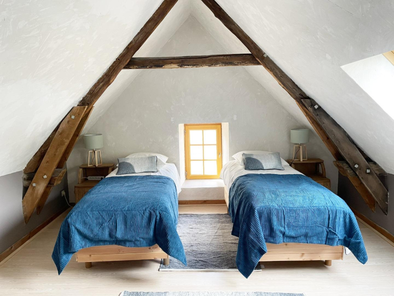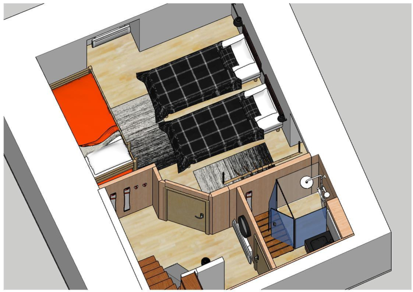 Au dernier niveau se trouve une chambre spacieuse et lumineuse pour 2 personnes (en lit double de 160 ou 2 simples suivant le besoin) et un WC indépendant.